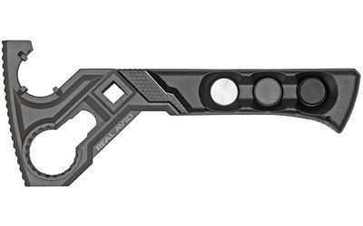 When it comes to using the Armorer's Master Wrench(TM), think precision. The ergonomic handle gives you the ability to apply serious torque needed to remove stubborn, crusted-on barrel or castle nuts without marring your firearm or stripping the nuts. The tool holds shape under pressure and has deep set sockets to grip your nuts and keep them gripped. The torque wrench attachment point allows you to apply accurate and critical torque adjustments to the barrel nuts, castle nuts, muzzle brakes, flash suppressors, and fixed stock receiver extensions. Plus, this is the only tool in the category to include a fully-functional, customizable armorer's hammer in the same tool.