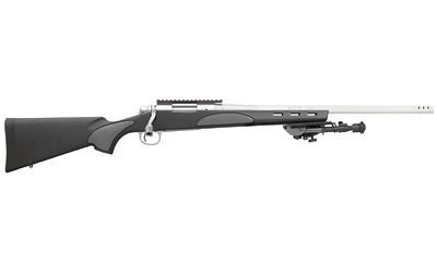 Remington, 700 Varmint Target Rifle Stainless Steel, Bolt Action Rifle, 308 Win, 22" Barrel, Black Stock With Gray Overmold, 4Rd, Tactical Bolt Knot, Picatinny Rail, Bi-Pod, X-Mark Pro Adjustable Trigger