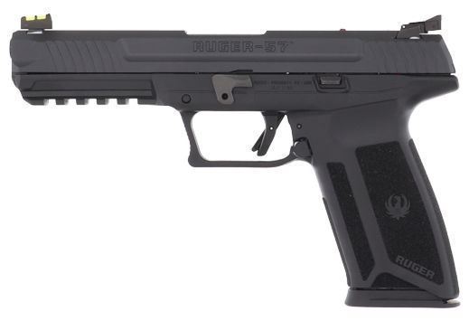 FEATURES: Impressive ergonomics include an easy trigger reach, robust slide release and reversible magazine release latch. Through hardened, billet steel slide with lightening cuts is drilled and tapped for easy mounting of optics with separately available optic adapter plate, available at ShopRuger.com. Windage and elevation adjustable, serrated rear sight and rapid acquisition fiber optic front sight for fast, accurate shooting. The alloy steel barrel features a black nitride treatment for wear resistance. Steel magazine provides double stack capacity without unnecessary bulk. Textured, ergonomic frame provides a secure and comfortable grip.