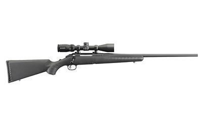 Ergonomic, lightweight synthetic stock designed for quick, easy handling blends a classic look with modern forend contouring and grip serrations. Ruger Marksman Adjustable(TM) trigger offers a crisp release with a pull weight that is user adjustable between 3 and 5 pounds, allowing shooters to make that perfect shot. The one-piece, three-lug bolt with 70 degree throw provides ample scope clearance and utilizes a full diameter bolt body and dual cocking cams for smooth, easy cycling from the shoulder. Patent-pending Power Bedding(R), integral bedding block system positively locates the receiver and free-floats the barrel for outstanding accuracy. Offers minute-of-angle accuracy that can make every hunt a success. Cold hammer-forged barrel results in ultra- precise rifling that provides exceptional accuracy, longevity and easy cleaning. Features a visible, accessible and easy-to-actuate tang safety that provides instant security. Soft rubber buttpad is crafted for maximum recoil reduction.