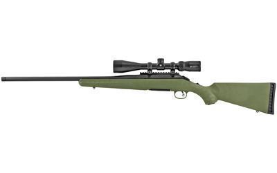 Ergonomic, lightweight synthetic stock designed for quick, easy handling blends a classic look with modern forend contouring and grip serrations. Ruger Marksman Adjustable(TM) trigger offers a crisp release with a pull weight that is user adjustable between 3 and 5 pounds, allowing shooters to make that perfect shot. The one-piece, three-lug bolt with 70 degree throw provides ample scope clearance and utilizes a full diameter bolt body and dual cocking cams for smooth, easy cycling from the shoulder. Patent-pending Power Bedding(R), integral bedding block system positively locates the receiver and free-floats the barrel for outstanding accuracy. Offers minute-of-angle accuracy that can make every hunt a success. Cold hammer-forged barrel results in ultra- precise rifling that provides exceptional accuracy, longevity and easy cleaning. Features a visible, accessible and easy-to-actuate tang safety that provides instant security. Soft rubber buttpad is crafted for maximum recoil reduction.