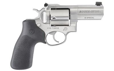 Ruger, GP100 Standard, Double Action Revolver, 44 Special, 3" Barrel, Satin Stainless Steel Finish, Hogue Monogrip Grips, Adjustable Rear & Fiber Optic Front Sight, 5 Round