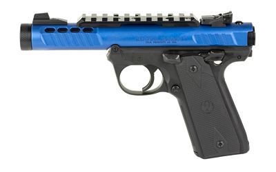 Ruger, Mark IV, 22/45 Lite, Single Action, Semi-automatic, Polymer Frame Pistol, 22LR, 4.4" Barrel, Threaded 1/2X28, Anodized Finish, Blue, Black Cerakote Barrel and Trigger, Checkered Rubber Grips, Adjustable Rear Sight, Ambidextrous Safety, 10 Rounds, 2 Magazines