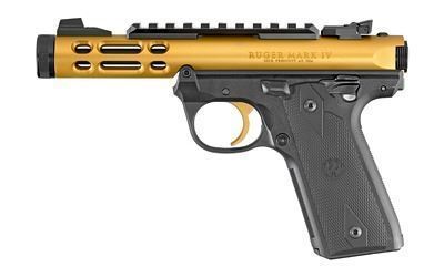 Ruger, Mark IV, Lite, 22/45, Semi-automatic, 22LR, 4.4" Threaded Barrel, Polymer Frame, Gold Anodized Finish, Checkered Grips, 10Rd, Adjustable Rear Sight
