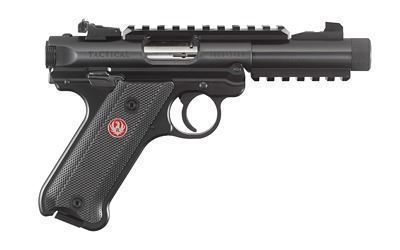 Ruger, Mark IV, Tactical, Single Action, Semi-automatic, Metal Frame Pistol, Full Size, 22LR, 4.4" Barrel, Threaded Barrel, Alloy, Blued Finish, Checkered Grips, Adjustable Rear Sight, 10 Rounds, 2 Magazines, Picatinny Rails on Top and Bottom of Barrel