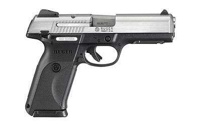 Ruger, SR45, Centerfire Pistol, 45 ACP, 4.5" Barrel, Brushed Stainless Finish, Stainless Steel Slide, Black Nylon Frame, Adjustable 3-Dot Sights, 10Rd