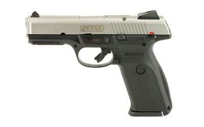Ruger, SR9, Centerfire Pistol, 9MM, 4.1" Barrel, Brushed Stainless Finish, Stainless Steel Slide, Black Nylon Frame, Adjustable 3-Dot Sights, 17Rd