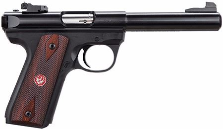 The Ruger 22/45 Target has a polymer frame with a serrated frontstrap and