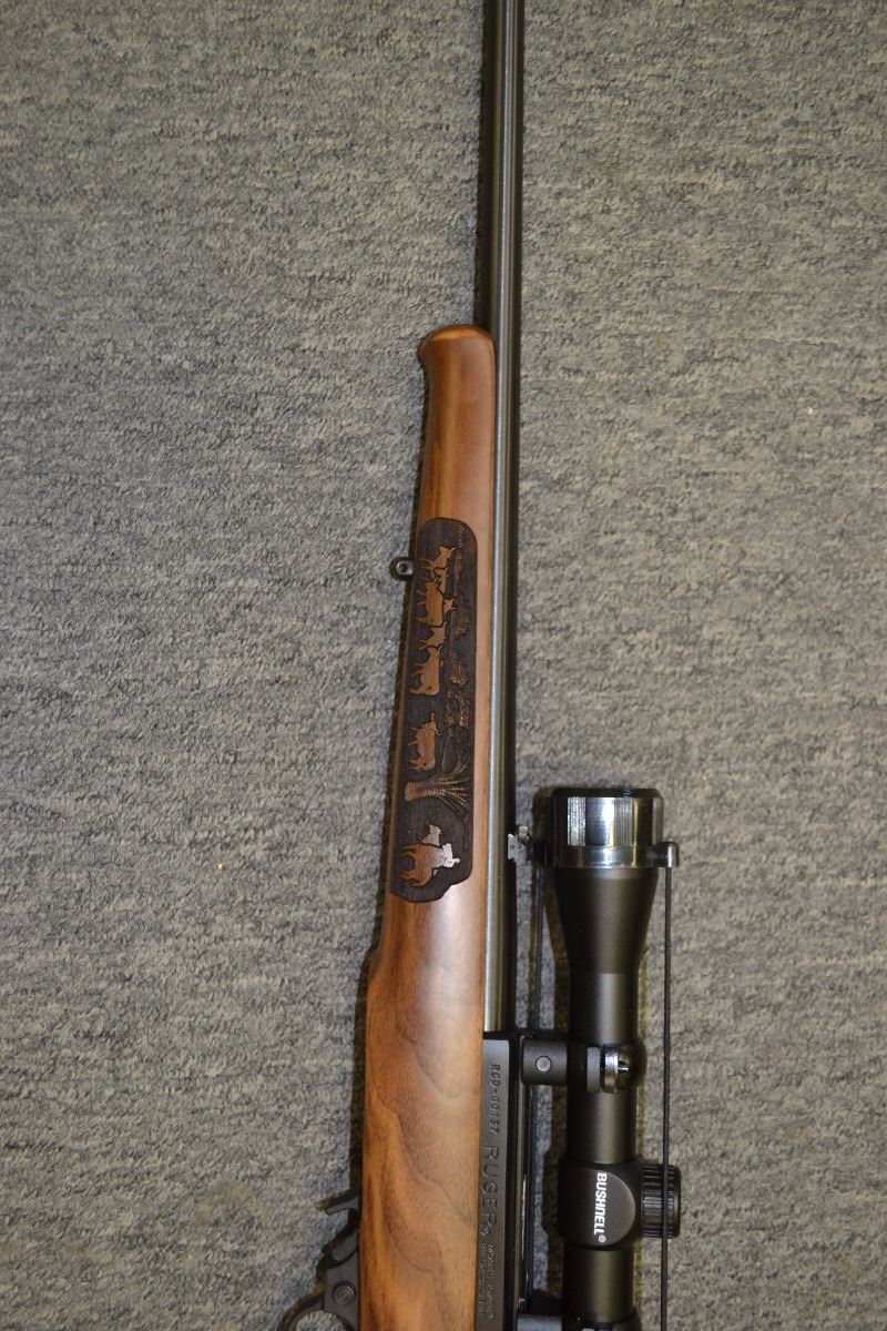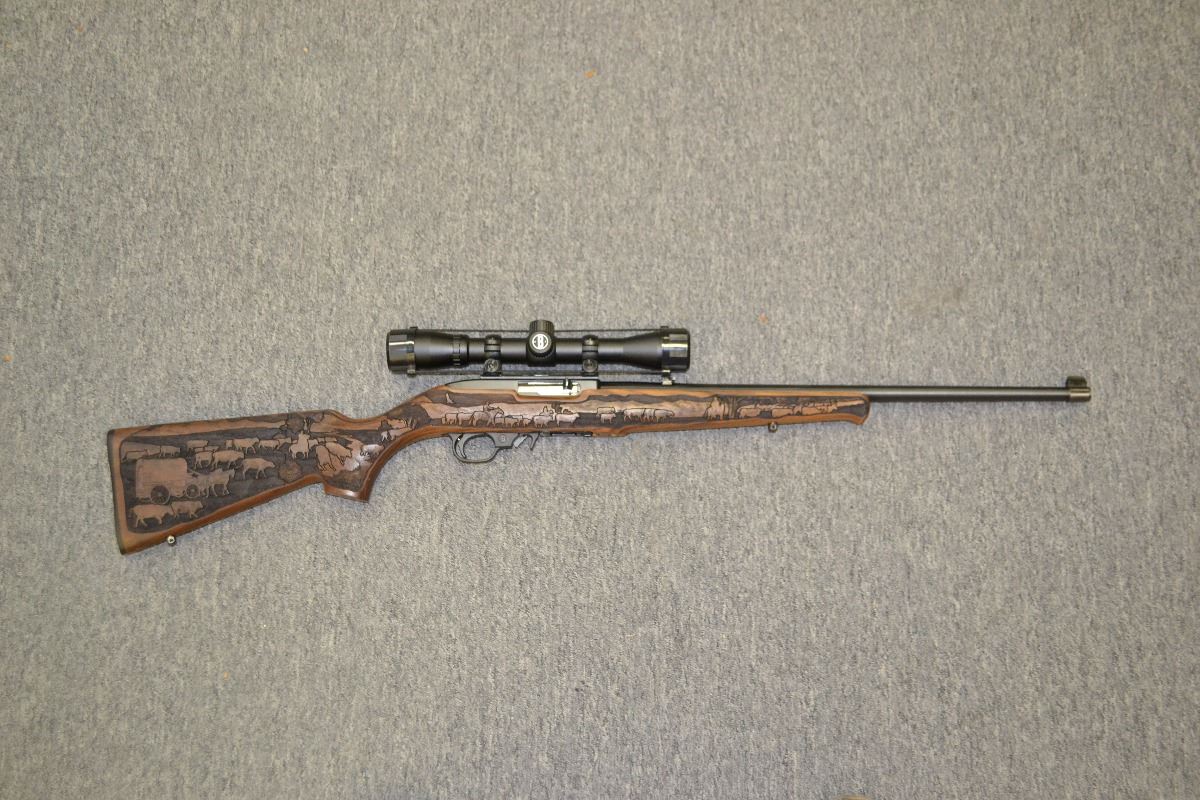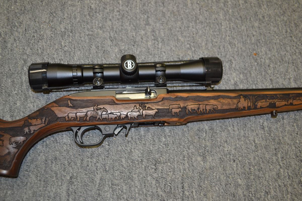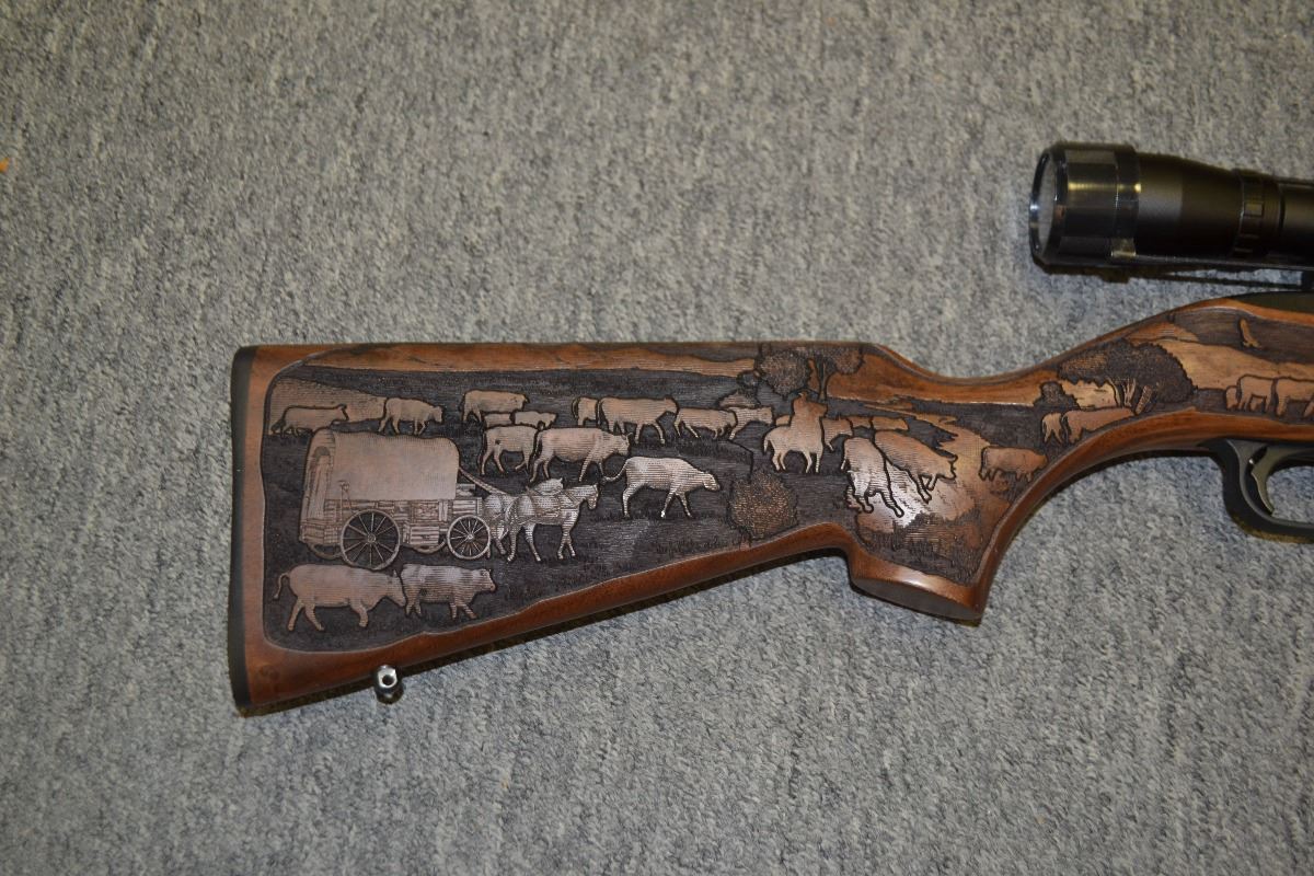 This very clean, used rifle is in like new condition. The collectible stock is engraved with a western scene. Bushnell scope is included. Serial #RCD-00137.