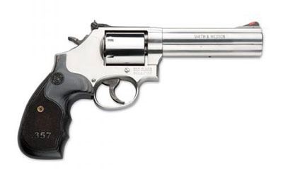 Smith & Wesson, 686 Plus, Deluxe, 3-5-7 Magnum Series Revolver, Double Action, 357 Mag, 5" Barrel, Satin Stainless Finish, Stainless Steel Frame, Adjustable Sights,Wood Grip, 7 Rounds