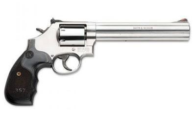 Smith & Wesson, 686 Plus, Deluxe, 3-5-7 Magnum Series Revolver, Double Action, 357 Mag, 7" Barrel, Stainless Steel frame, Satin Stainless Finish, Adjustable Sights, Wood Grips, 7 Rounds