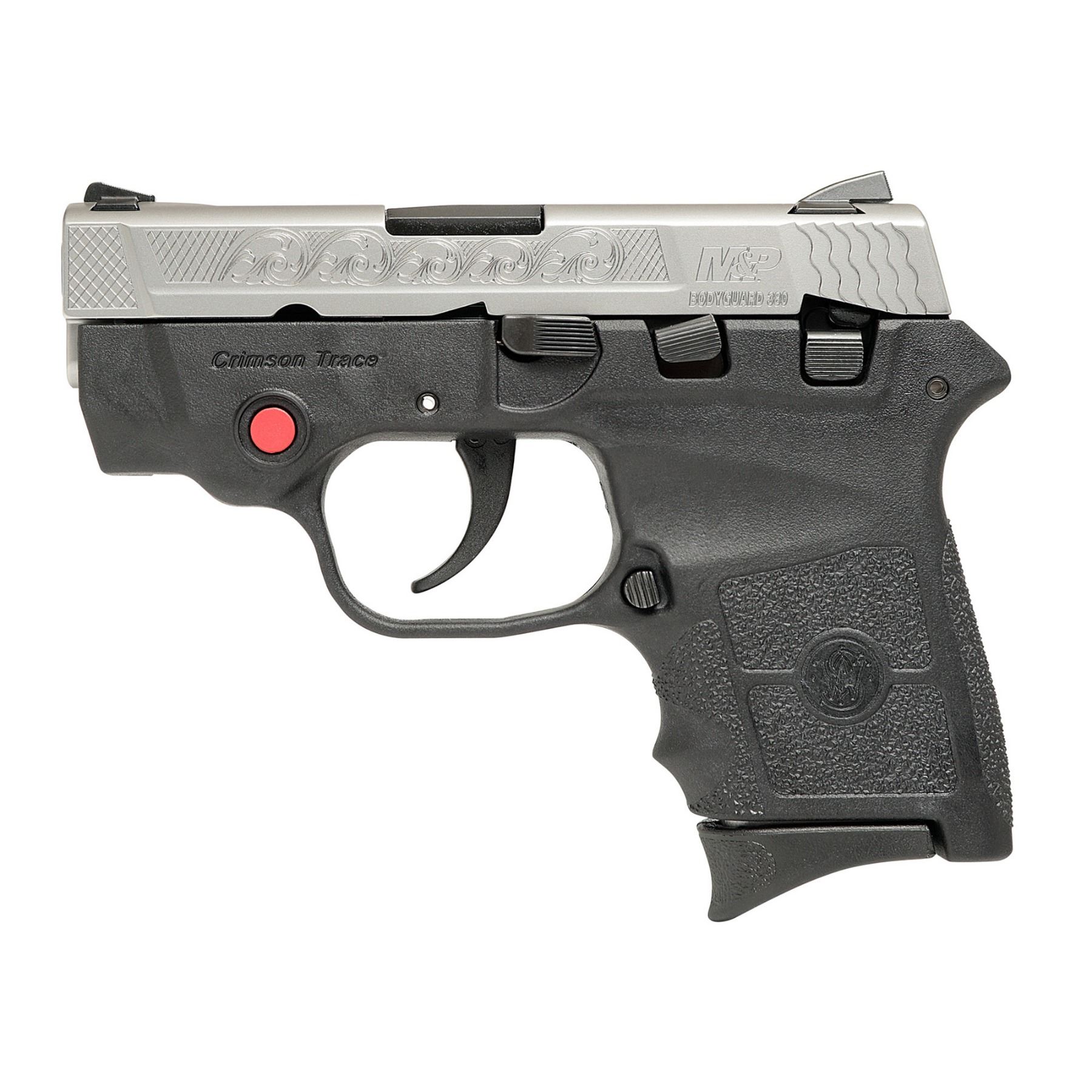 Smith & Wesson, M& P Bodyguard, Semi-automatic, Double Action Only, Compact, 380ACP, 2.75" Barrel, Polymer Frame, Matte Stainless Finish, 6Rd, Crimson Trace Laser, Machine Engraved Slide, Fixed Sights