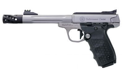 Smith & Wesson, Performance Center Victory Target, Semi-Automatic, 22LR, 6" Target Fluted Barrel with Muzzle Brake, Stainless Steel, Glass Bead Finish, Adjustable Fiber Optic Rear Sight & Fiber Optic Front Sight, Tandemkross "hiveGrips" with Target Thumbrest Grip, 10 Rounds, 2 Magazines, Thumb Safety