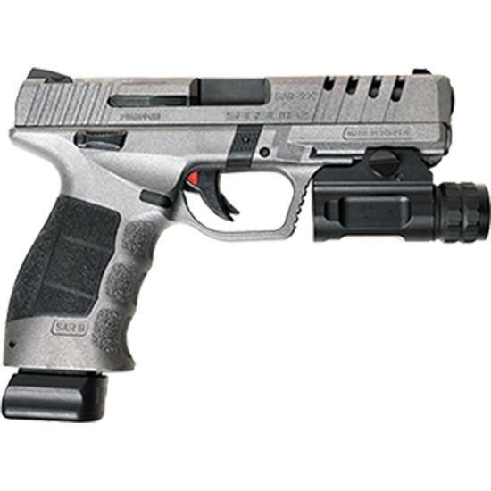 The ultimate SAR-9, the X Platinum model boasts a Cerakote finish with slide serrations to reduce weight. This same buttery smooth double action trigger, adjustable sights and accessory rail are standard features on the X Platinum. It comes with one 17 and one 19 round magazine.