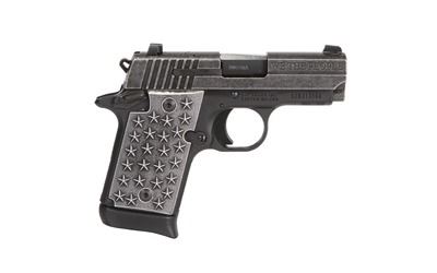 Sig Sauer, P938, We The People, Semi-automatic, Single Action, Compact, 9MM, 3", We The People Engraved Slide, Custom Aluminum Grips Embossed With 50 Stars, 7Rd, 1 Mag, Contrast Sights