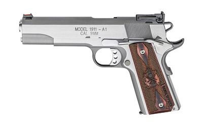 Springfield, Range Officer 1911 Pistol, 9MM, 5" Match Grade Barrel, Stainless Finish, Diamond Cocobolo Grips, Fiber Optic Front and Fully Adjustable Rear Sights, 9Rd, 2 Magazines