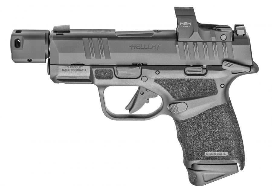 Springfield, Hellcat RDP, Semi-automatic, Striker Fired, Sub-Compact, Optics Ready, 9MM, 3.8" Barrel w/ Compensator, Polymer Frame, Textured Grips, Tritium Night Sights, 2 Mags, 13Rd, Black, Includes HEX Wasp Red Dot