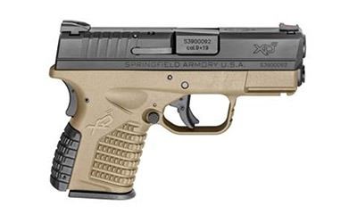 Springfield, XDS, Striker Fired, 9MM, 3.3" Barrel, Polymer Frame, FDE Finish, Fiber Optic Front Sight, 8Rd, 2 Magazines