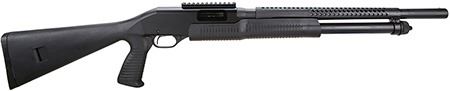 his 12-gauge model has a black synthetic stock with a pistol grip, 18.5"