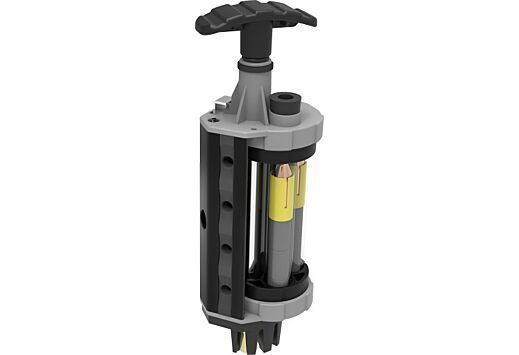 Single-stroke loading action seats powder charge and bullet into barrel in one motion with a universal muzzle clamp that aligns charger with any In-Line muzzleloader barrel