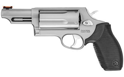 Taurus, Judge, Double Action, Metal Frame Revolver, Large Frame, 410 Gauge/45LC, 3" Barrel, 3" Chamber, Stainless Steel, Matte Finish, Silver, Rubber Grips, Fiber Optic Front Sight, 5 Rounds