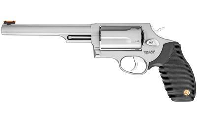 Taurus, Judge, Double Action, Metal Frame Revolver, Large Frame, 410 Gauge/45LC, 6.5" Barrel, 2.5" Chamber, Stainless Steel, Matte Finish, Silver, Rubber Grips, Fiber Optic Front Sight, 5 Rounds