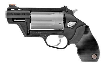 Taurus USA, Judge, Public Defender, Double Action, Polymer Frame Revolver, Medium Frame, 410 Bore/45LC, 2.5" Barrel, 2.5" Chamber, Matte Finish, Silver Cylinder, Black Frame, Rubber Grips, Fixed Sight, 5 Rounds
