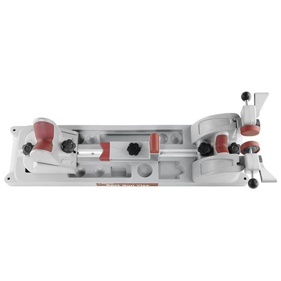 The Tipton Best Gun Vise features front, center and rear supports; each independently adjustable to fit virtually any gun, including handguns. Two adjustable rear clamps accommodate large and small stocks alike, and an L-shaped center support can be used for break-open shotguns, AR-15s and similar guns. Constructed of durable nylon that is resistant to chemicals, cleaners and solvents and features molded accessory bins for bottles, cleaning supplies and other items.