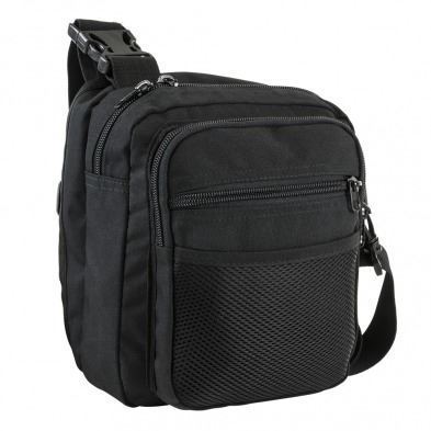 Hidden dual zippered CCW compartment that is secured with a quick connect plastic buckle. Unlatched the buckle and pull the buckle and shoulder strap apart to automatically to reveal and expose the hidden CCW compartment and holster.
