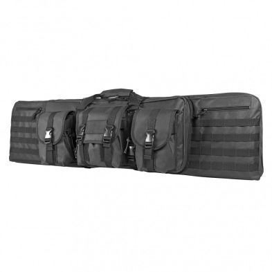 46” Double Carbine Case is constructed of heavy duty PVC material and the main compartment is fully padded on all side with thick ½” closed cell foam padding. The main compartment has Heavy Duty zippers with metal zipper pulls that can be locked with a small pad lock (lock not included).