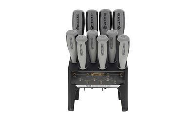 Experience unmatched convenience and organization in your workspace with the Wheeler 10 Piece SAE Hex Benchtop Screwdriver Set. Engineered to be an all-in-one tool assortment for common SAE Hex fasteners, this 10-piece driver set ranges from 3/32" to 3/8", guaranteeing that you're equipped with the right tools for every task. Features include color-coded handles and markings offering quick identification of each screwdriver type and size, ensuring you spend less time searching for the right tool. Textured, rubber over-molded handles fit comfortably in the hand, increasing grip while reducing hand strain. The black phosphate-coated shafts protect against rust and corrosion, giving you peace of mind that your tools will be long-lasting and look great on your bench for years to come. The sturdy benchtop stand ensures that your tools stay organized, preventing tool loss and time spent looking for misplaced tools. The versatile stand not only keeps the tools organized but also attaches to Wheeler's other Benchtop Screwdriver Sets, allowing you to build the ultimate collection of benchtop tools.