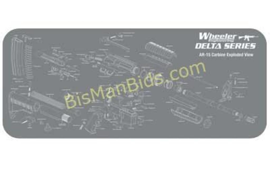 The Wheeler Delta Series AR-15 Maintenance Mat is perfect for any AR-15 owner. It features a screen printed expanded view of an AR-15 Carbine to easily identify the parts of your rifle. The Mat is made of a dark gray non-marring padded neoprene material with a durable non-skid rubber backing to protect firearm finishes while helping to keep track of small parts. Excess oils and solvents are absorbed into the mat, keeping the surface clean and dry. Each mat is machine or hand washable with mild detergent and water, and can be rolled up to easily fit in your range bag.