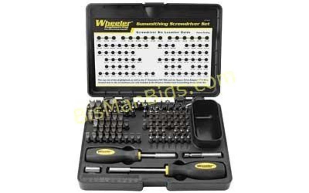 Screwdrivers are the most important and most used gunsmithing tools. Wheeler's Deluxe Gunsmithing Screwdriver Sets belong on every gunsmithing bench. The well thought-out bit selection will put an end to burred, buggered and busted up screw slots on any gun. Unlike other screwdriver suppliers, Wheeler's engineers measured the screws on over one hundred modern and antique firearms to make sure that we offered bits for every situation. Whether you are working on a Browning(R) Superposed, a Remington(R) 700, a Smith & Wesson(R) revolver or a Colt(R) single action, you will find that there is a bit to fit every screw on your gun. The 89 piece set includes 15 ingenious specialty bits. These bits are great for installing scope bases, getting you out of a pinch by providing a small pin punch when you really need it and keeping once-in-a-while lifesaver tools at your fingertips.
