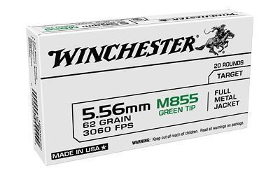 Winchester Ammunition, M855, 556NATO, 62Gr, Full Metal Jacket, Green Tip, 20 Round Box