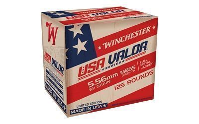 Winchester Ammunition, USA Valor, 556NATO, 62Gr, Full Metal Jacket, Green Tip, 125 Round Box, Limited Edition Series