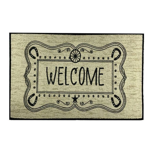 The mat features an elegant buckle border that frames the welcoming message, adding a touch of sophistication and charm to your entryway. The text "Welcome" is prominently displayed in a friendly, inviting font, greeting visitors with warmth and hospitality the moment they step towards your door. The design is not just about aesthetics; the texture of the mat is carefully chosen to effectively trap dirt and moisture, keeping your indoors cleaner and more comfortable.