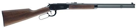 has a compact, 20" deeply-blued round barrel, straight grip walnut stock