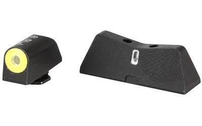 XS DXT2 Big Dot Night Sights offer the best front sight visibility in all lighting conditions. DXT2 Big Dot sights drive focus to the front sight using a high-contrast front and a V-notch rear for an unobstructed view of the front sight. DXT2 Big Dot front sights use a patent pending glow dot that absorbs light and glows in low light levels before it is dark enough to see the tritium. Optic Yellow is the best option for low light and has the brightest glow intensity. Primarily based on the white light spectrum" optic yellow is very reflective and will excite the photoluminescent properties of the dot faster than any other color. The increased surface area of the convex dot increases light absorption" intensifying the charge of the glow properties of the dot. The dot-the "i" sight picture" with a tritium dot in the front sight and a tritium bar in the rear" prevents confusing the front and rear sight in high-stress situations. The wide field of view increases visibility of the front sight and of the threat downrange.