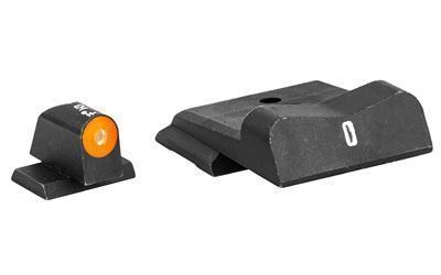 XS DXT2 Big Dot Night Sights offer the best front sight visibility in all lighting conditions. DXT2 Big Dot sights drive focus to the front sight using a high-contrast front and a V-notch rear for an unobstructed view of the front sight. DXT2 Big Dot front sights use a patent pending glow dot that absorbs light and glows in low light levels before it is dark enough to see the tritium. Optic Orange is designed to offer a high-contrast sight picture when shooting in bright light conditions and maintain its visibility in decreasing light levels. To ensure visibility in low light when uncharged" optic orange is primarily based on yellow with a hint of red. The increased surface area of the convex dot increases light absorption" intensifying the charge of the glow properties of the dot. The dot-the "i" sight picture" with a tritium dot in the front sight and a tritium bar in the rear" prevents confusing the front and rear sight in high-stress situations. The wide field of view increases visibility of the front sight and of the threat downrange.